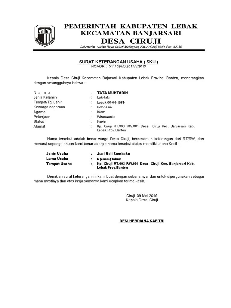 Sku Surat Keterangan Usaha Dari Desa / Contoh Surat Keterangan Usaha : Keperluan jenis surat yang dipilih.